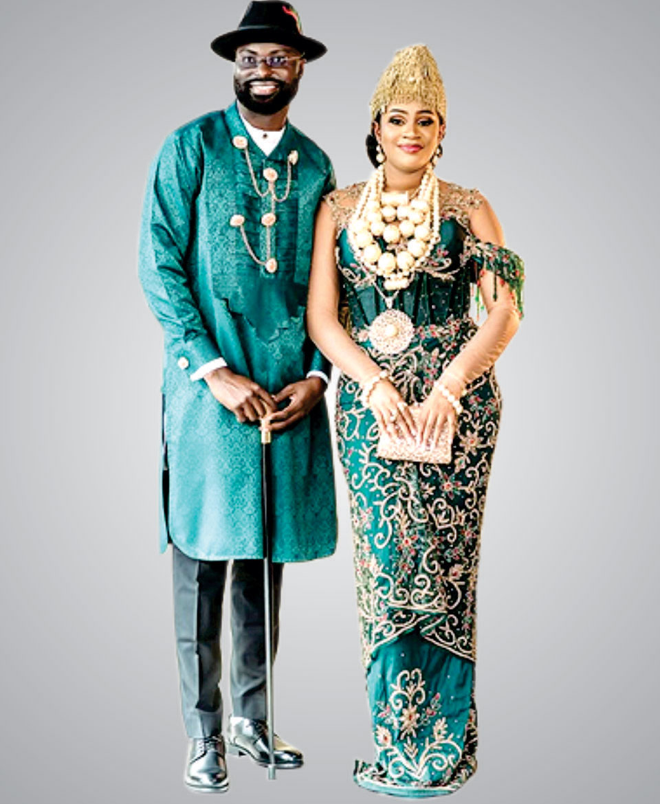 Make a bold statement at your next event with Elegance, Turquois Couples Atibo outfit